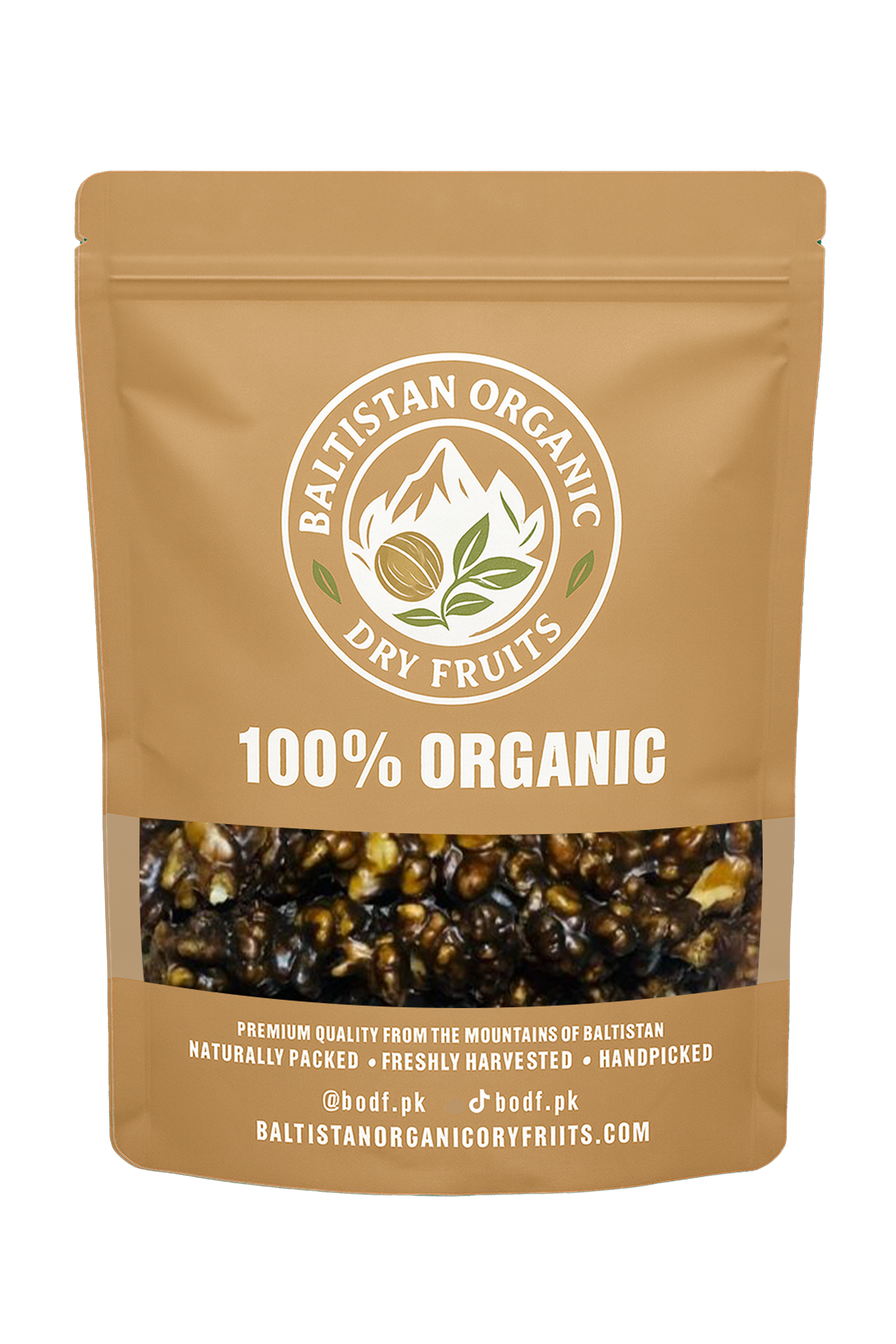 A traditional Baltistan delicacy, walnuts dipped in sweet mulberry syrup for a unique and nutritious treat.